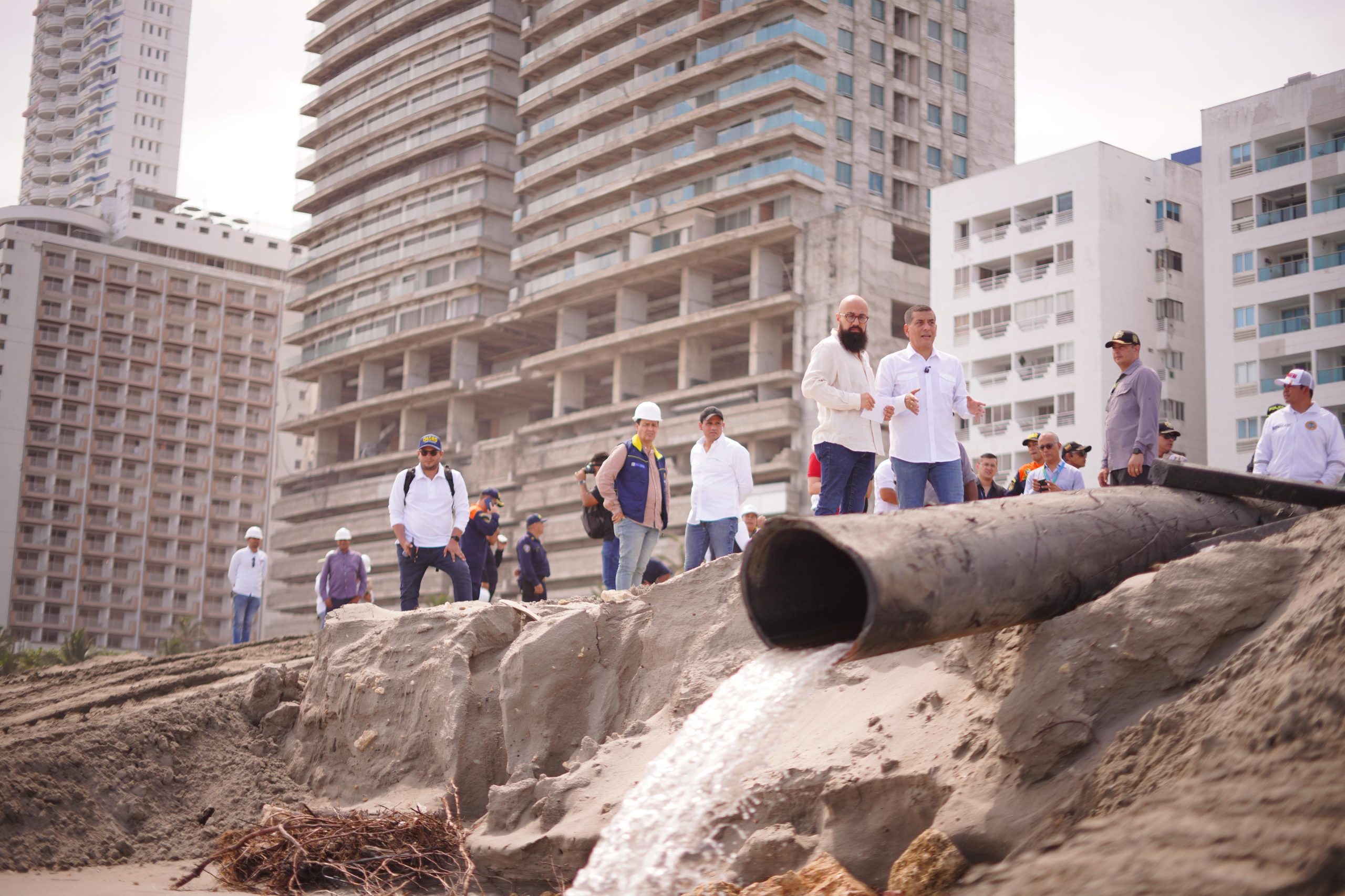 Un recorrido por las obras que se adelantan en el sector de Bocagrande y que hacen parte del proyecto de Protección Costera, realizaron el alcalde Dumek Turbay y el director de la Unidad Nacional de Gestión de Riesgo-UNGRD, Carlos Carrillo.